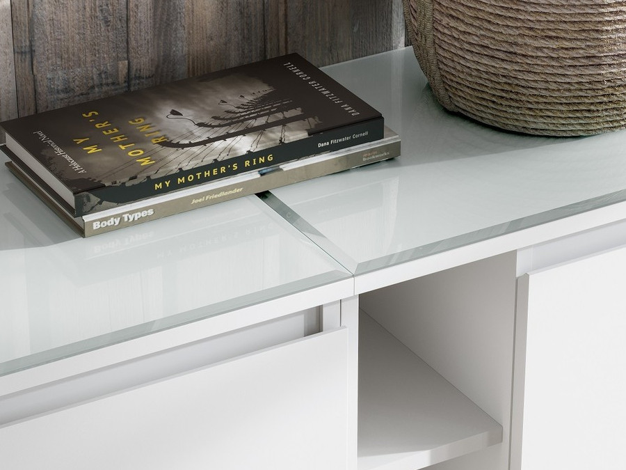 - покрытие столешницы — облачно-белое стекло «сатинат»