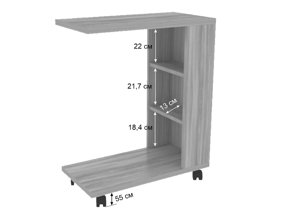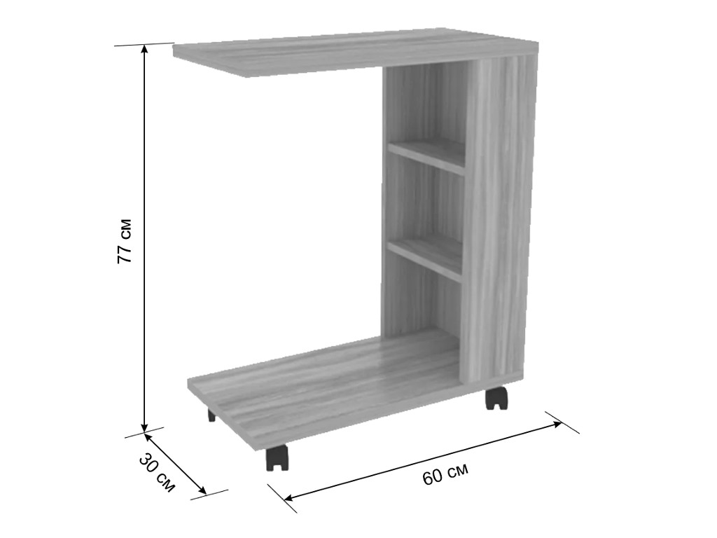 Описание: Состоит из: стола с 2-мя полками, на колесиках. Изделие симметричное.