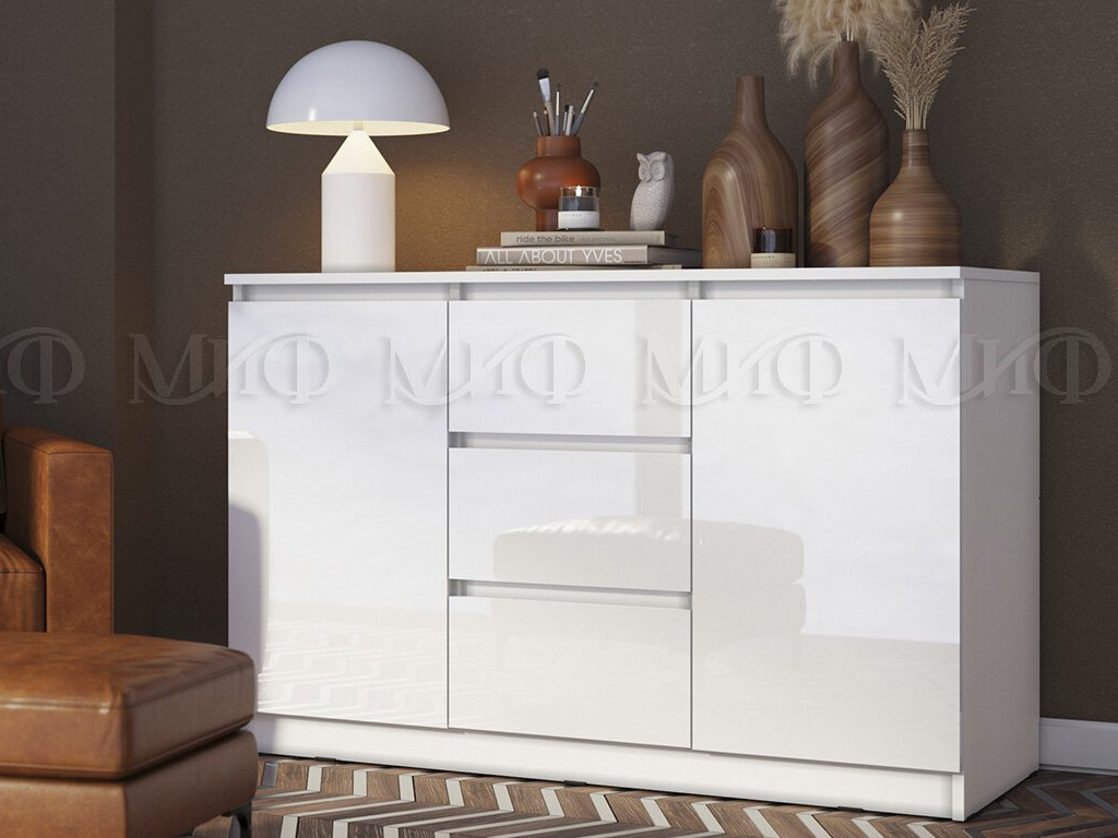 - Комод 1200 2 двери 3 ящика Челси Белый