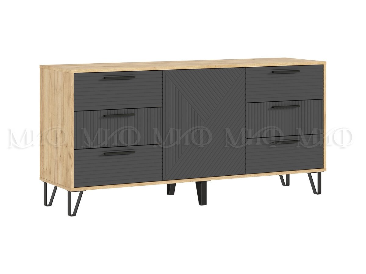- Комод (1500) Флэш Браш Графит, Дуб Крафт