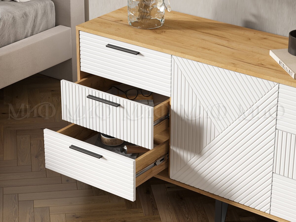 - Комод (1500) Флэш Браш Вайт, Дуб Крафт