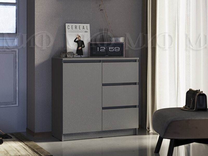- Комод 800 3 ящика 1 дверь Челси графит