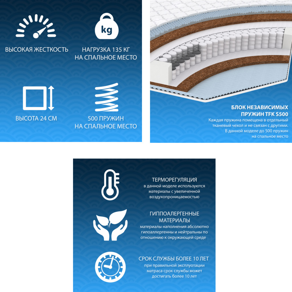 - Матрас Bio massage cocos double TFK шириной 1800 мм