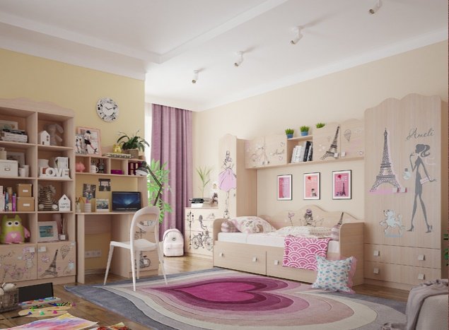 Детская модульная, комплектуется по вашему выбору. Цена указана за комплектацию на главном фото - стеллаж, стол, комод, софа, полка, шкаф 1 створка, шкаф 2 створки