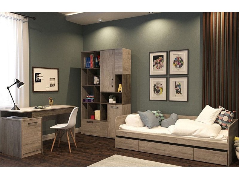 Цена за комплект: Кровать с ящиками, Стол письменный, Д-10 Пенал открытый, Д-11 Стеллаж