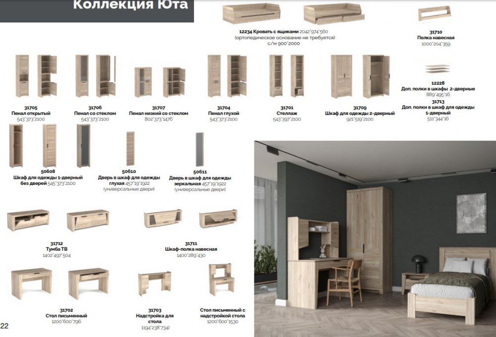 Цена за комплект: Кровать 900, Ортопедическое основание 900, Тумба прикроватная. Стол письменный, Надстройка, Шкаф для одежды 2-х дверный