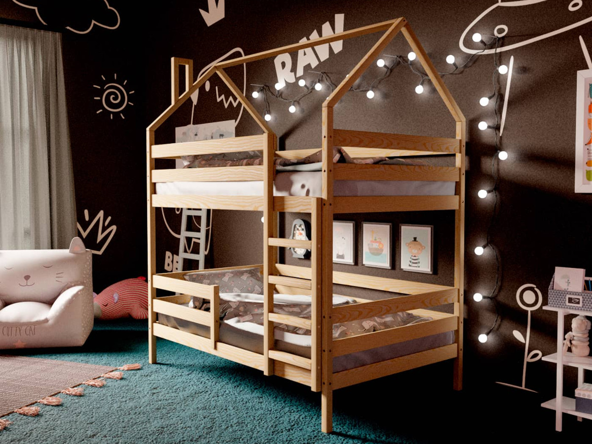 - Двухъярусная кровать-домик без покраски 80х160 см