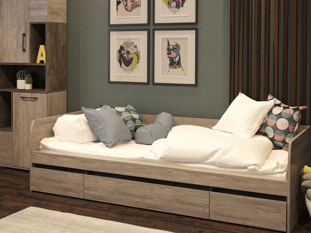 Кровать 900 с ящиками Денвер Риббек серый