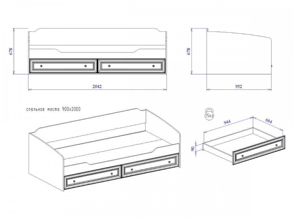 Спальное место: 900*2000 мм