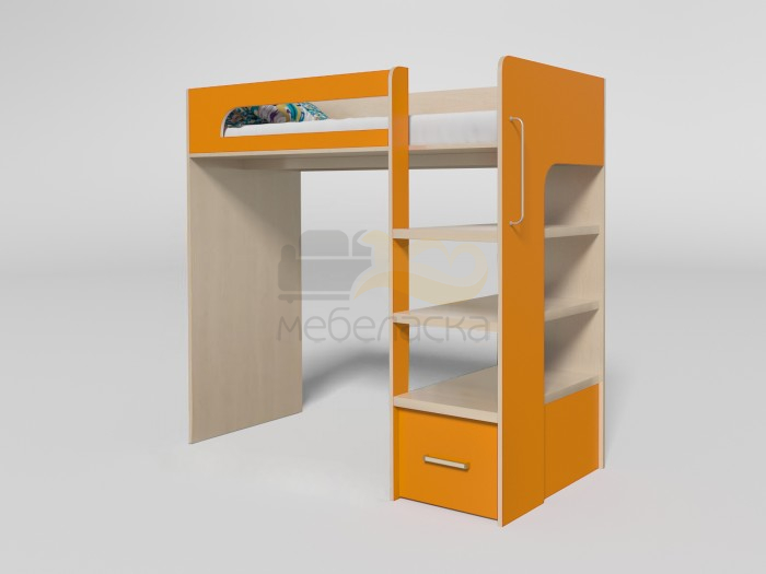 Подростковая кровать-чердак разработана с учетом требований эргономики и современного европейского дизайна. Кровать имеет одно полноценное спальное место. Ступени лесенки изготовлены из усиленной ЛДСП 32 мм. Внизу лестницы расположен вместительный короба для белья и игрушек.