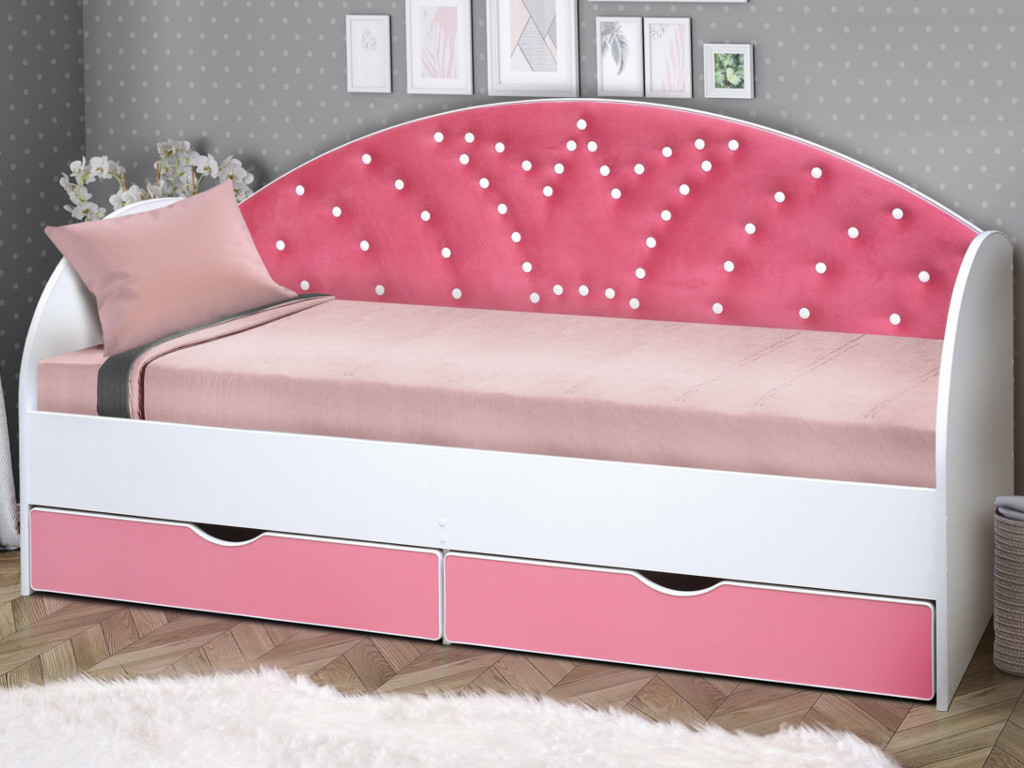 - Кровать с продольной мягкой спинкой Корона №1 800х1600 мм розовая