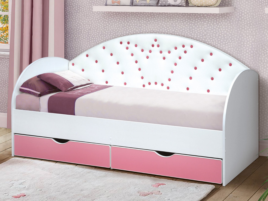 - Кровать с продольной мягкой спинкой Корона №4 800х1600 мм розовая