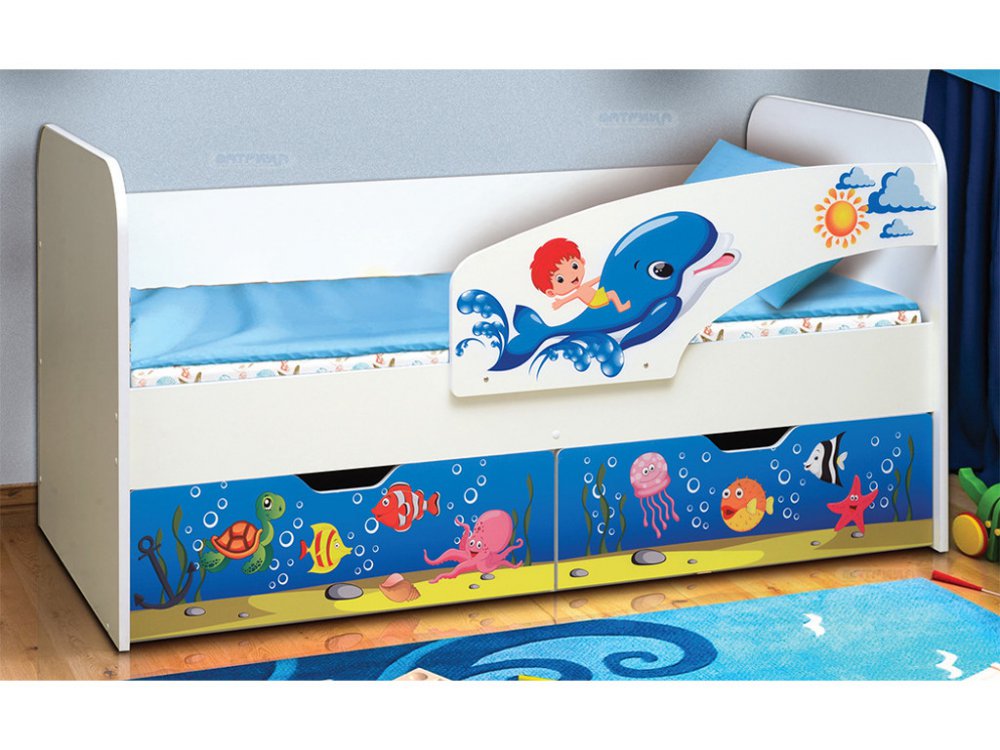 - Кровать детская с фотопечатью Дельфин