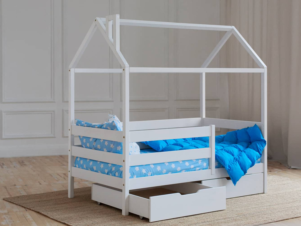 - Кроватка-Домик белый 80х160 см с ящиками