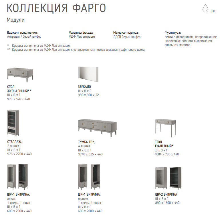Материал корпуса: ЛДСП Серый шифер, опоры из массива