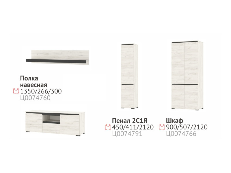 - Гостиная Гретта дуб крафт белый/антрацит