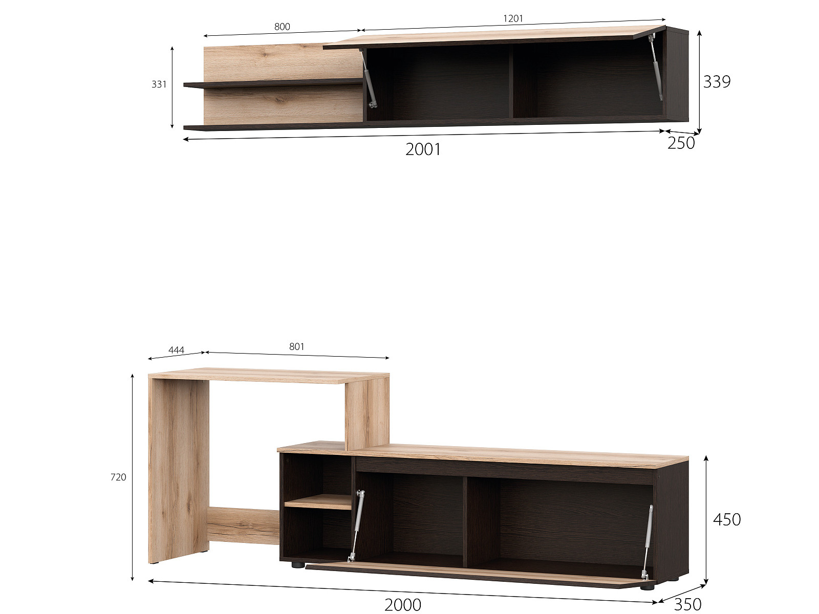 Материал корпуса: ЛДСП 16 мм, Дуб Делано, Венге