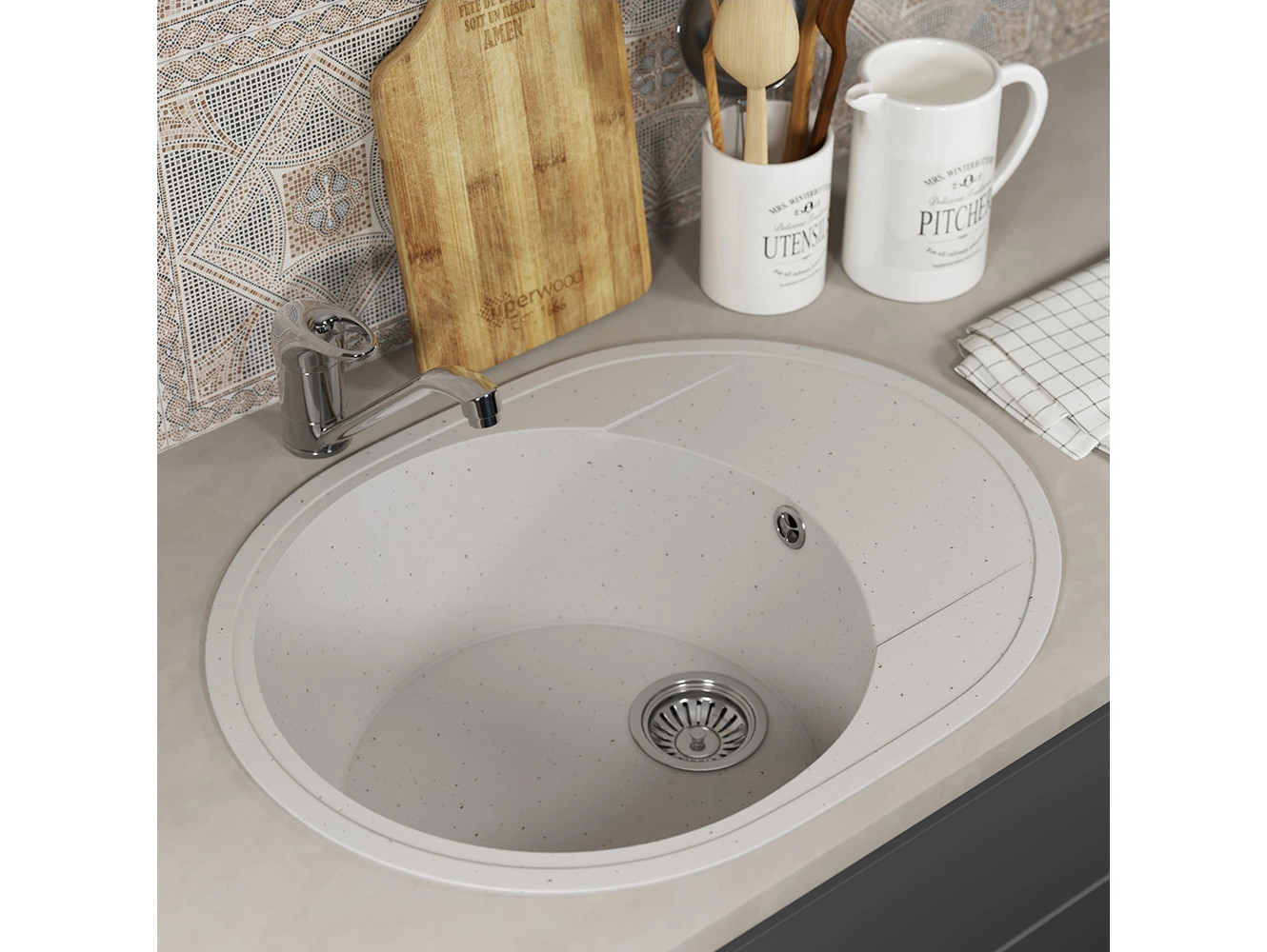 - Кухонная мойка Uperwood ECON UPD-107-001 белая матовая