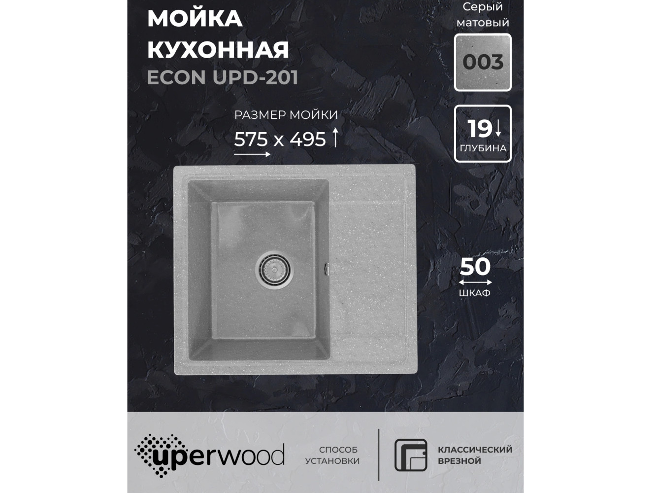 - Кухонная мойка Uperwood ECON UPD-201-003 серая матовая