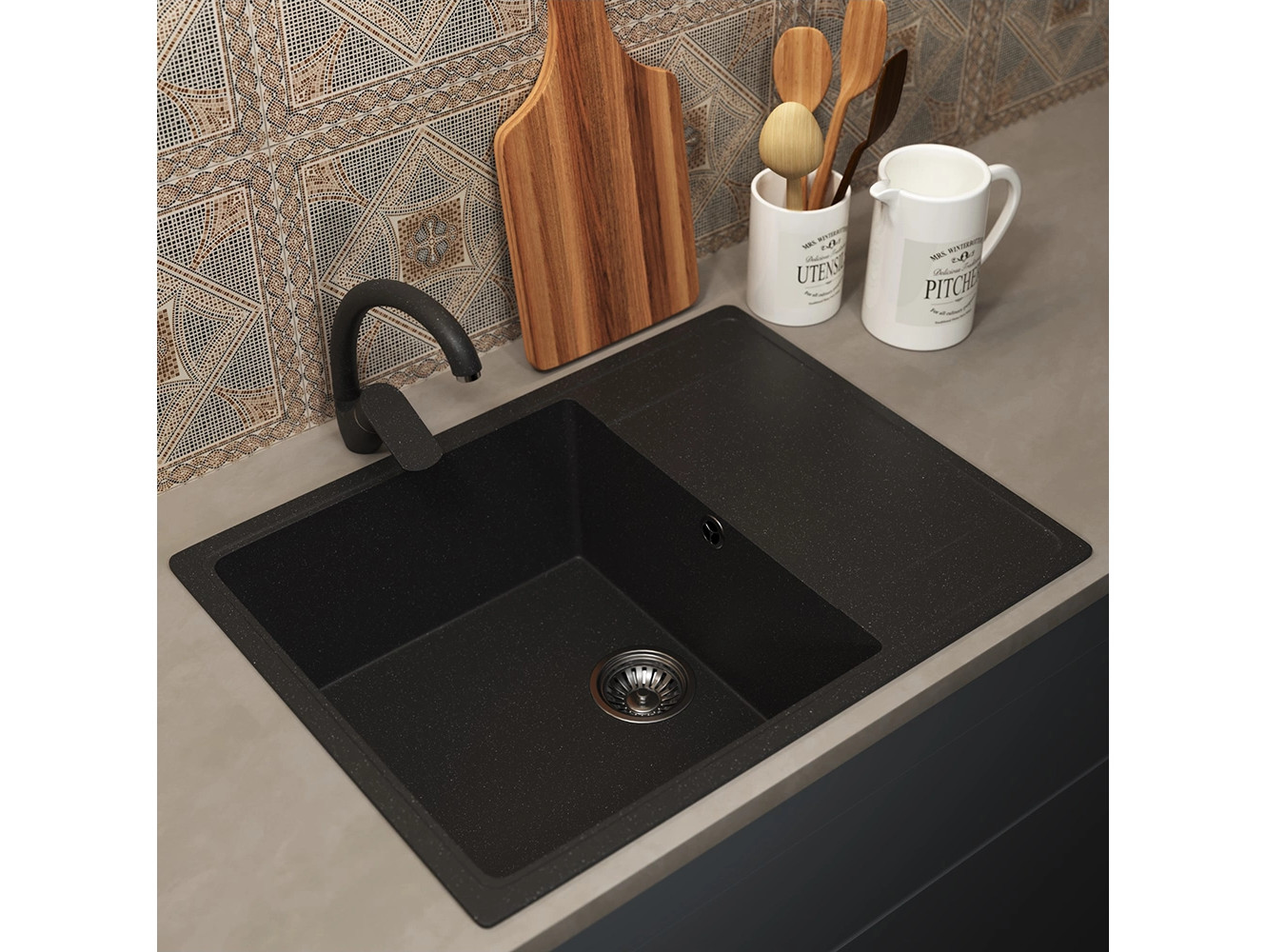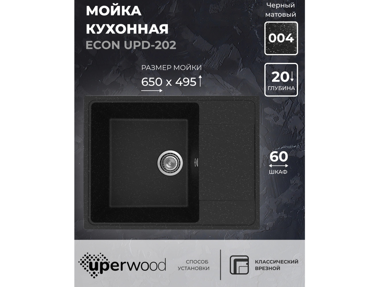 - Кухонная мойка Uperwood ECON UPD-202-004 черная матовая