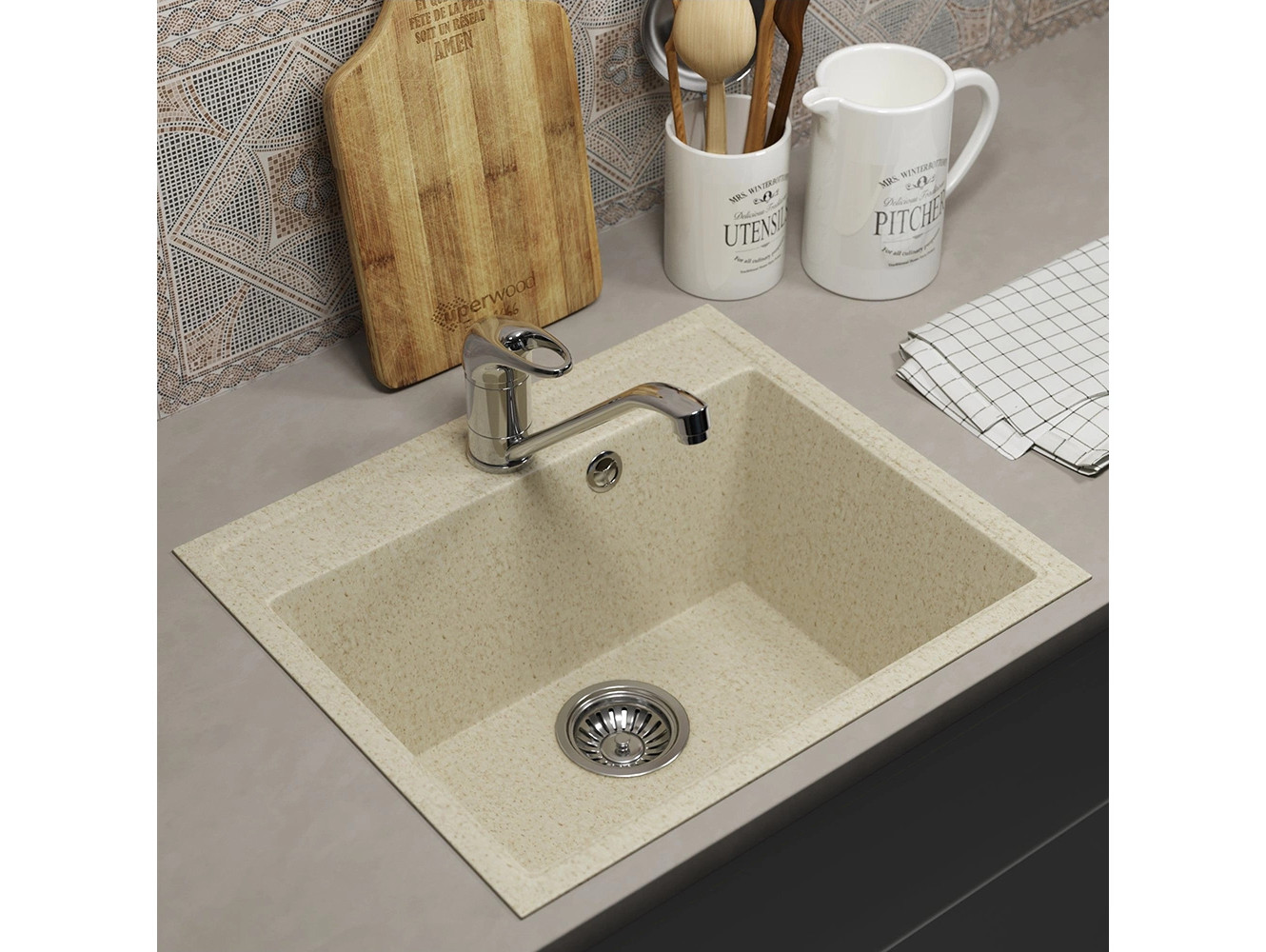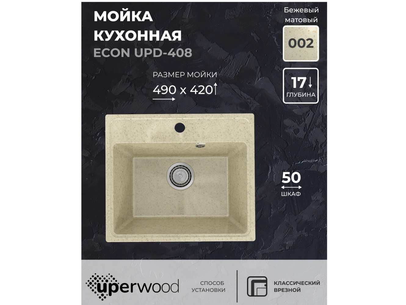 - Кухонная мойка Uperwood ECON UPD-408-002 бежевая матовая