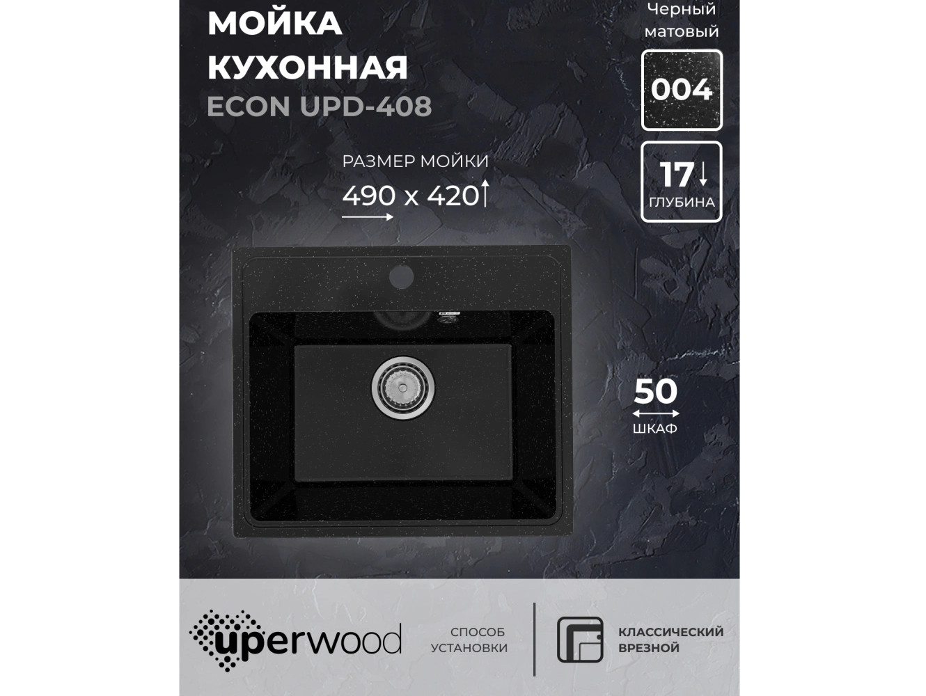 - Кухонная мойка Uperwood ECON UPD-408-004 черная матовая