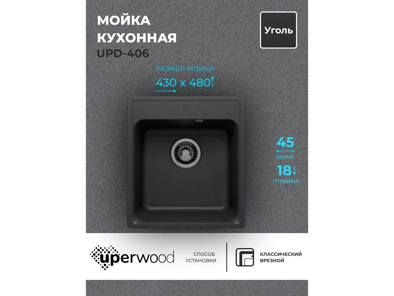 - Кухонная мойка Uperwood UPD-406 уголь