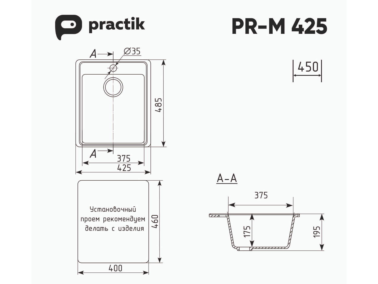 - Мойка Practik PR-M 425-002 слоновая кость