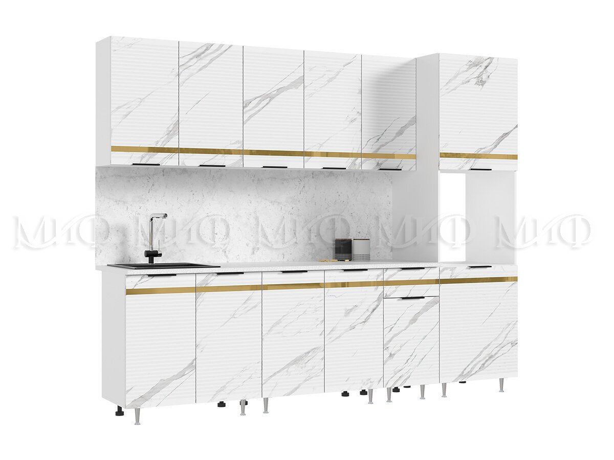 Кухня Милена 2,6 м Мрамор белый софт