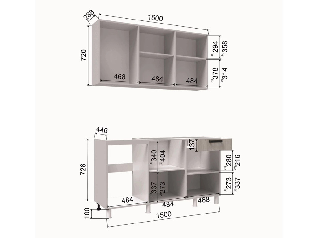 - Кухня Ривьера 1500 МДФ Карбон Фарфор без столешницы