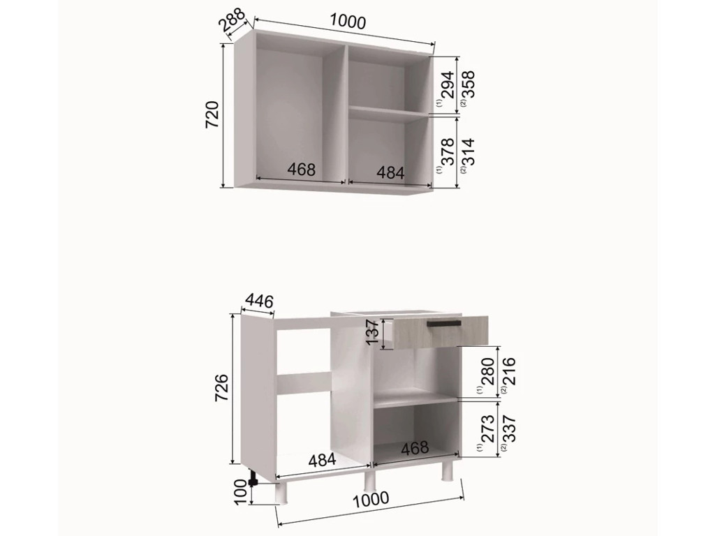 - Кухня Вандт 1000 МДФ Айвори/Лунный Кратер без столешницы