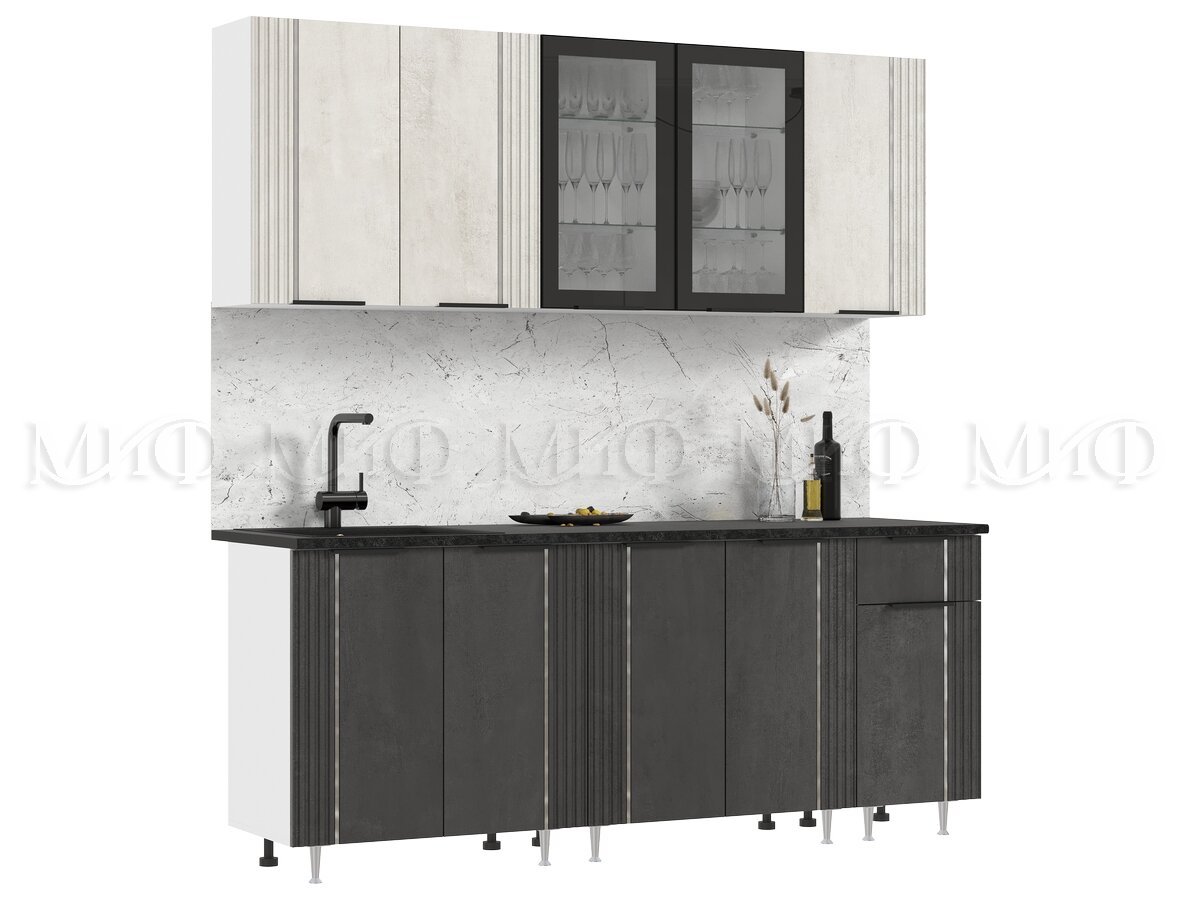 - Кухня Виктория 2000 мм Камень светлый/Камень темный/Белый (Кастилло темный)