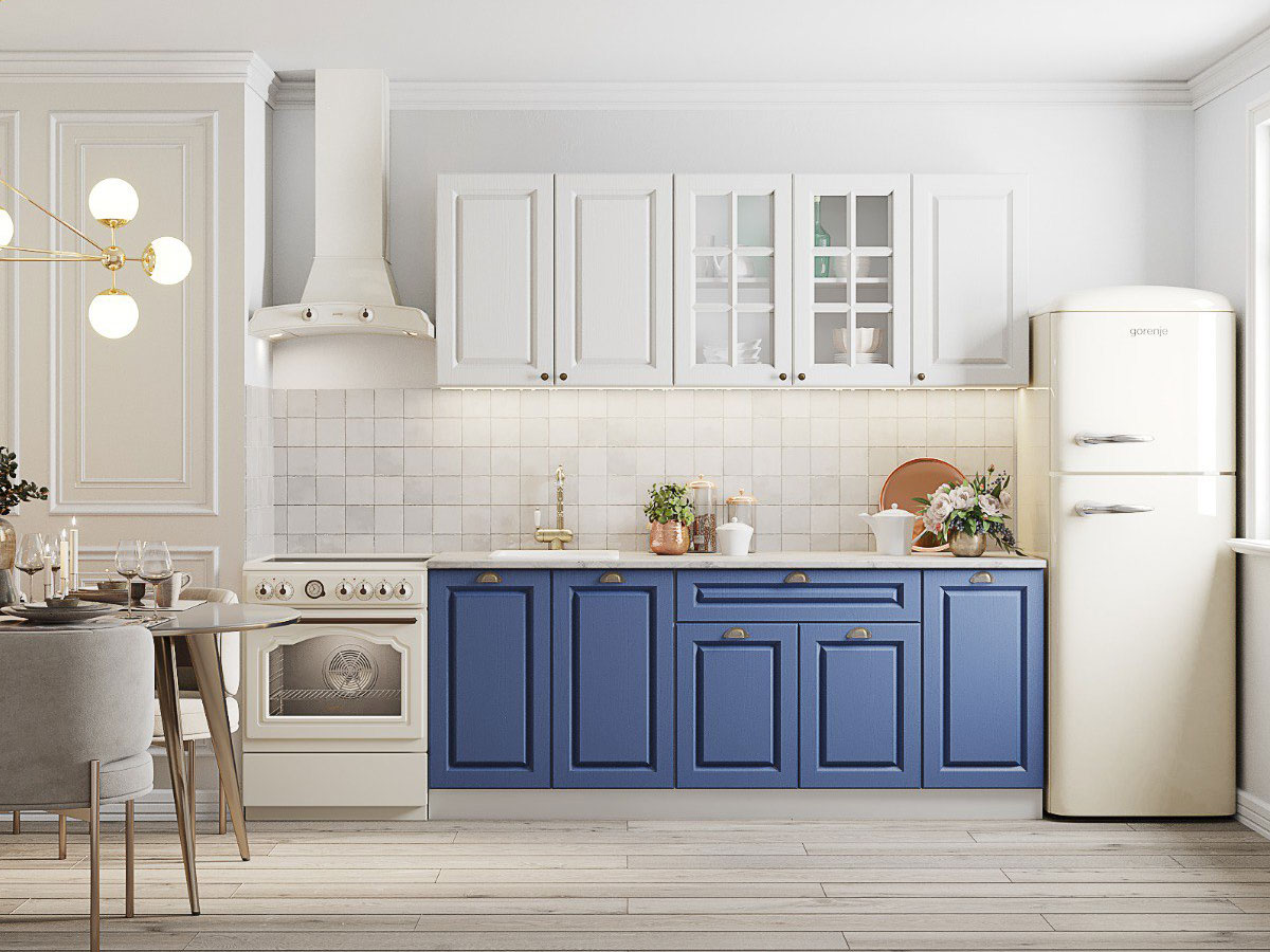 Высота: верхних шкафов 720 мм, нижних - 820 мм.