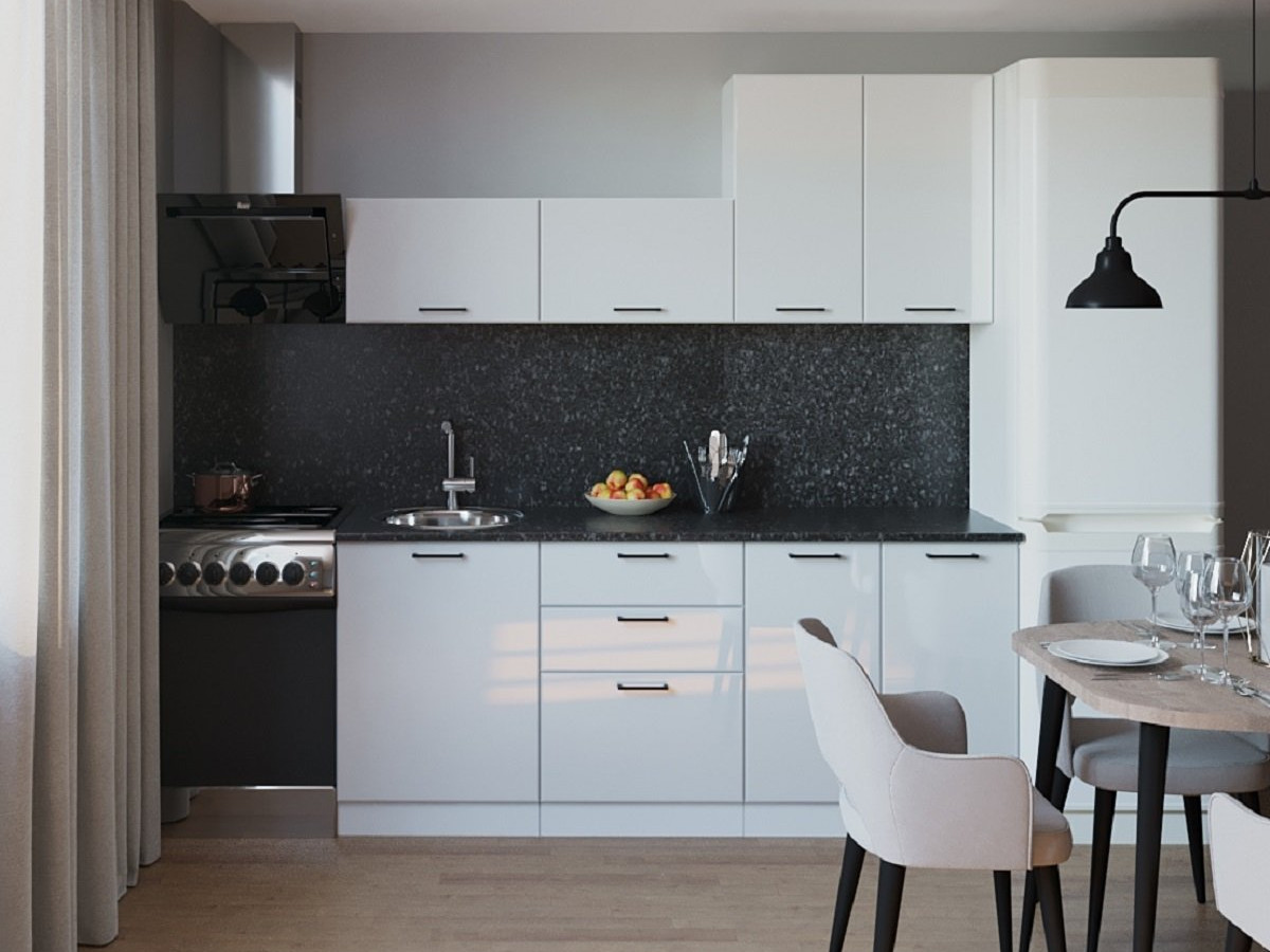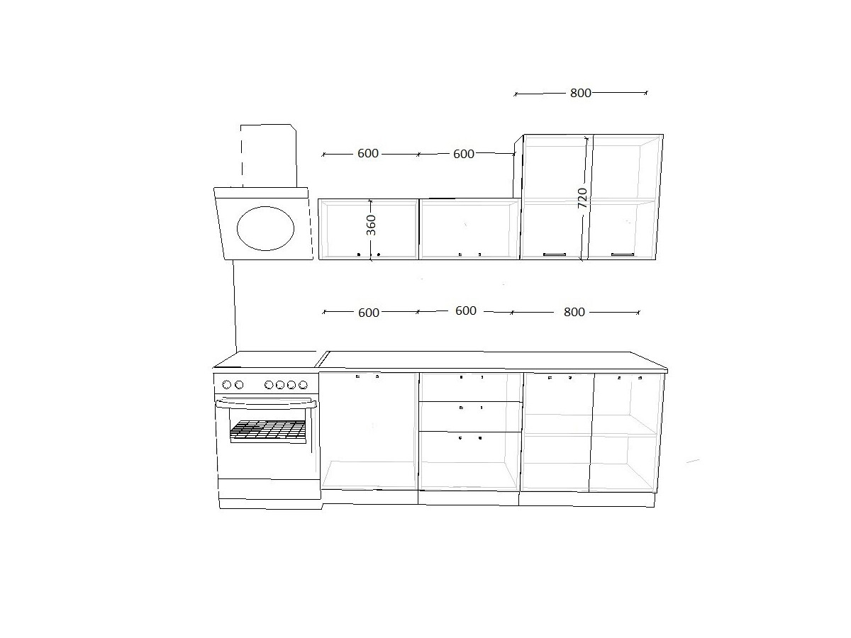 Кухонная мойка, стеновая панель, посудосушитель, планки для столешницы в комплект не входят.
