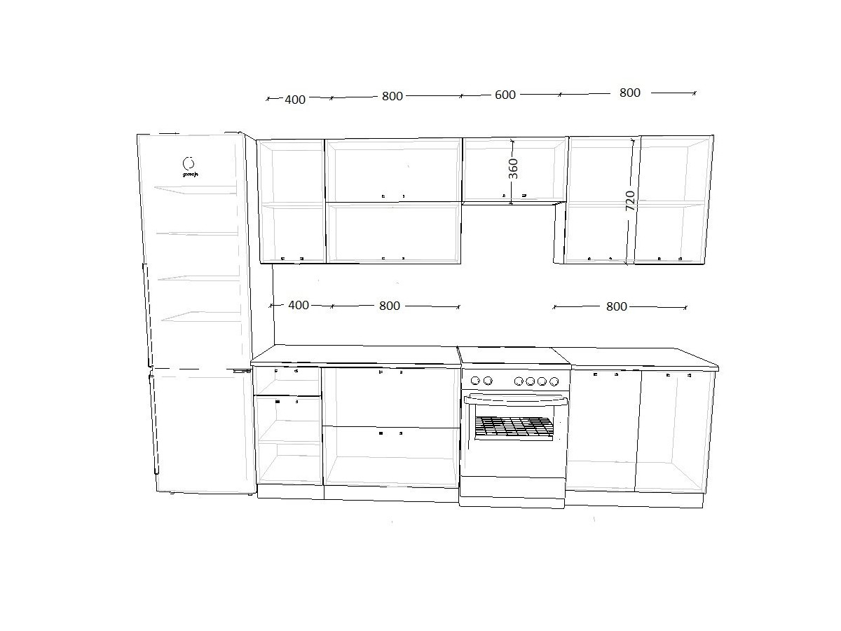 - высота верхних шкафов 720 мм
