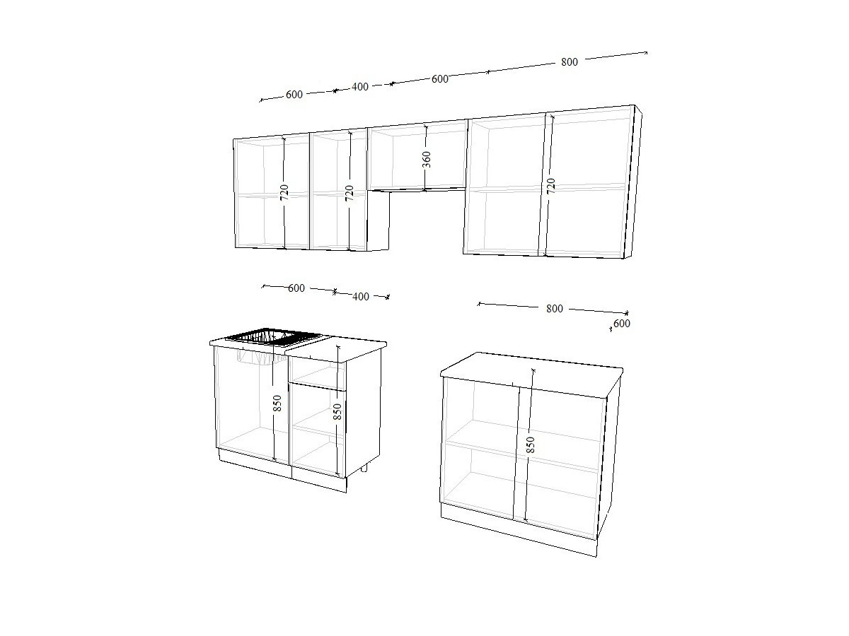 - высота верхних шкафов 720 мм