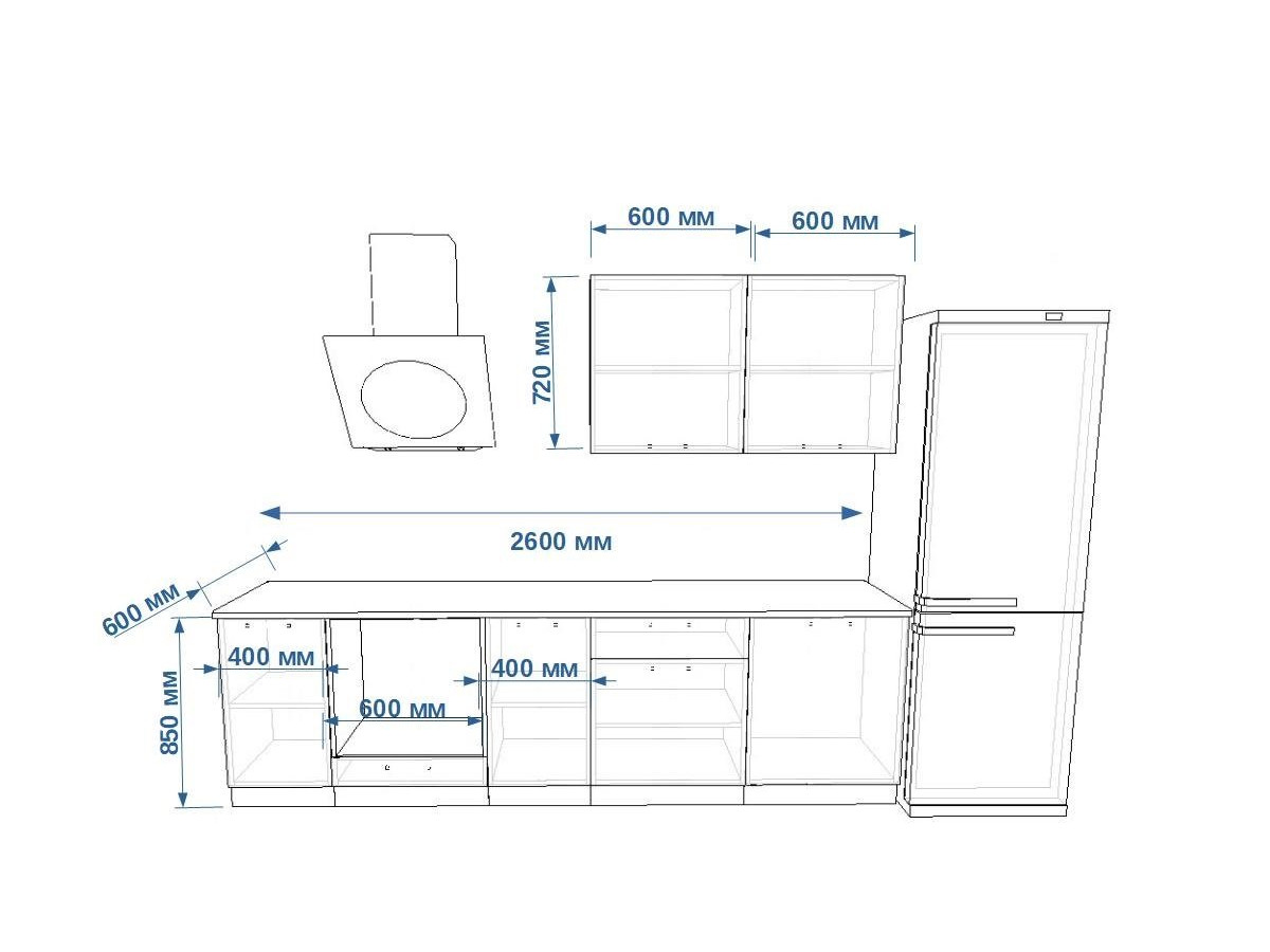 - Кухонный гарнитур арт 2 Океания Кристалл 2600 мм
