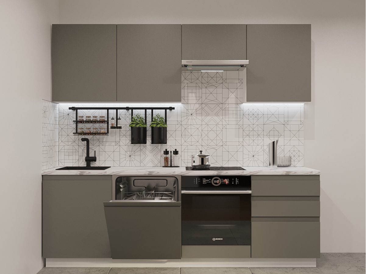 - Кухонный гарнитур арт 36 Лайн Обсидиан 2400 мм
