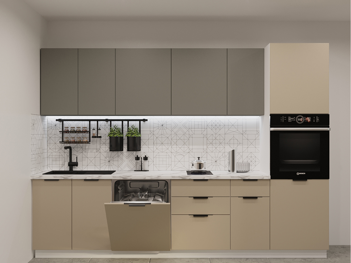 Кухонный гарнитур арт 5 Фаска Обсидиан Пикрит 3000 мм