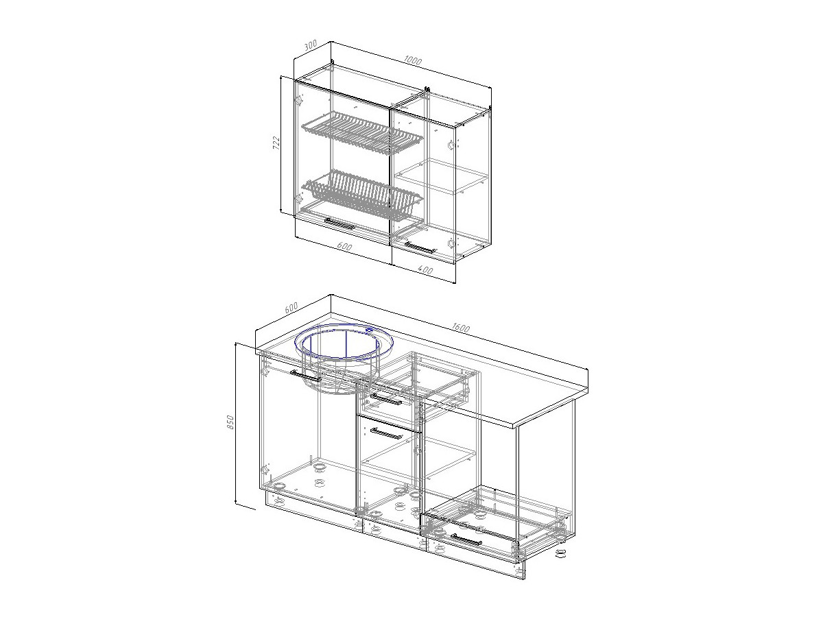 - Столешница: ЛДСП 26мм со скругленным краем (в пластике)