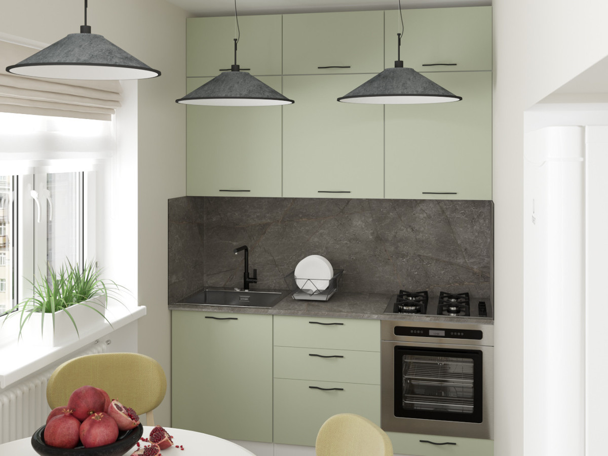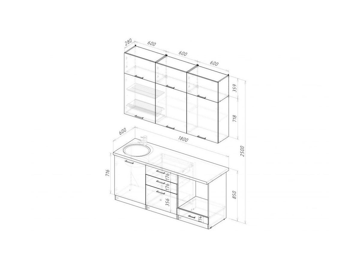 Мойка, смеситель, стеновая панель и посудосушитель в комплект гарнитура не входят.