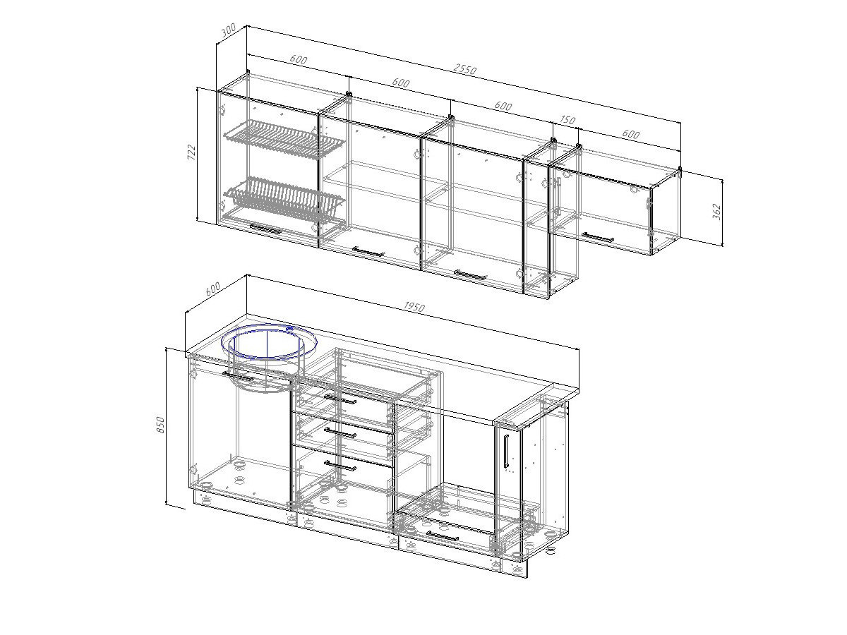 Ширина кухни: 2550 мм