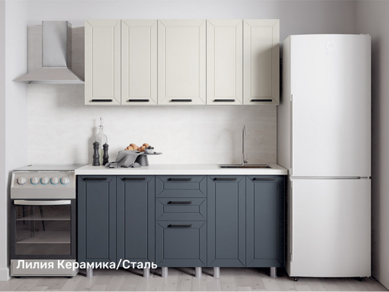 - Кухонный гарнитур Лилия 1600 мм Керамика/Сталь