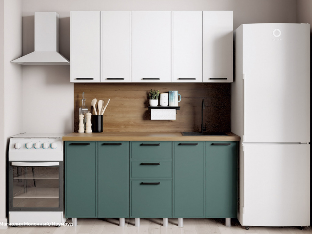 - Кухонный гарнитур Магнолия 1600 мм Молочный/Изумруд