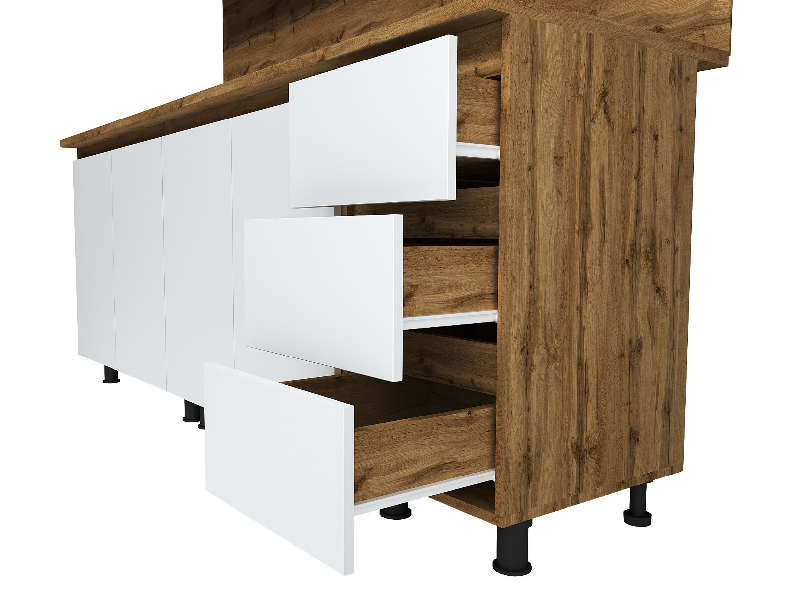 Гарнитур комплектуется роликовыми направляющими и петлями без доводчиков.