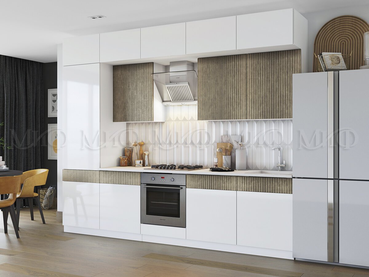 - Кухонный гарнитур Оливия 3000 Белый глянец холодный/Голден Пэлас