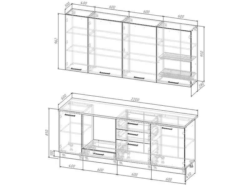 Кухонный гарнитур Трансильвания 2200 (верх 950 мм)