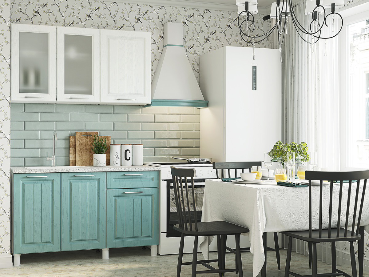 Кухонный гарнитур Лагуна МДФ 1600 морская волна софт/дуб седой