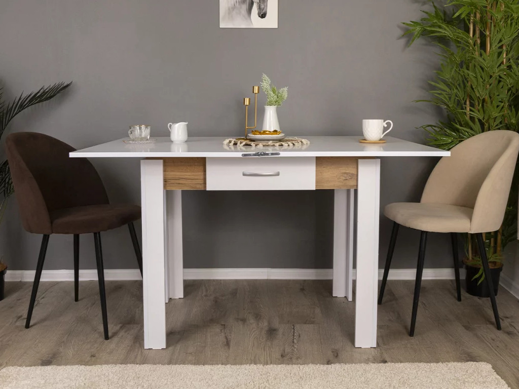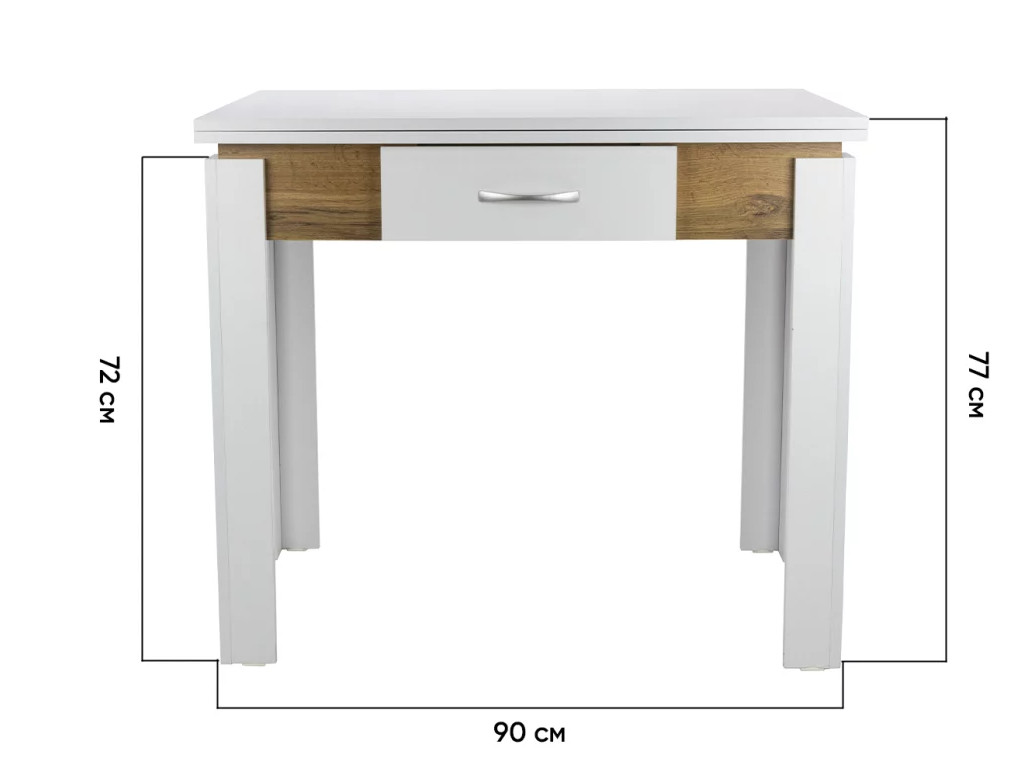 Стол обеденный Doma раскладной с ящиком Белый бриллиант/Дуб вотан