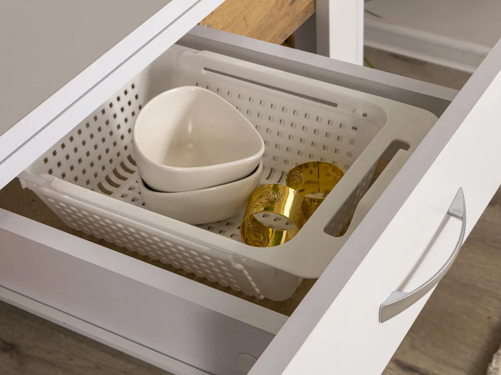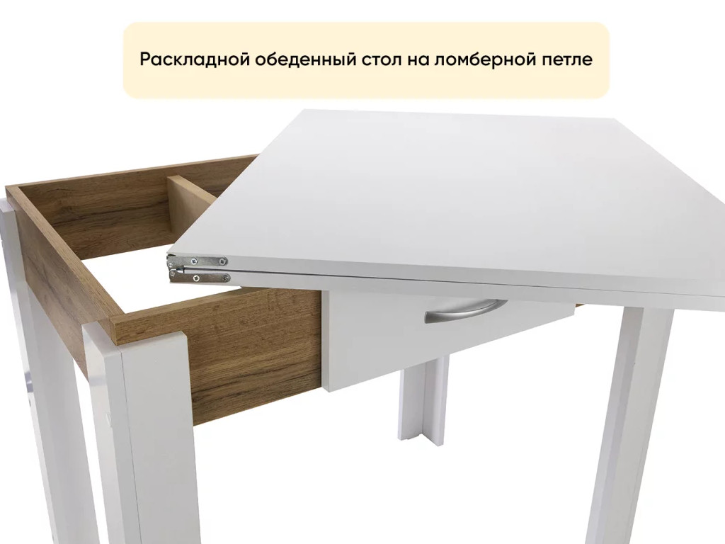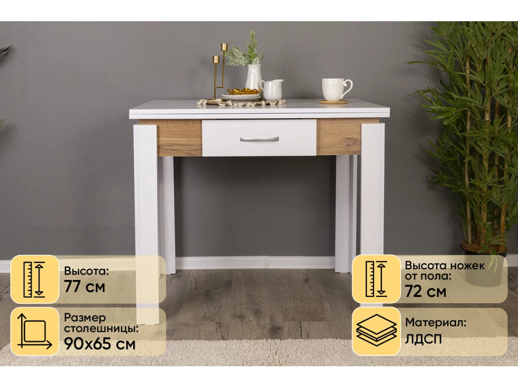 - Стол обеденный Doma раскладной с ящиком Белый бриллиант/Дуб вотан